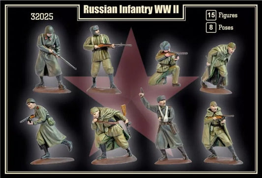 MARS 32025 WORLD WAR II RUSSIAN INFANTRY 15 FIGURES/8 POSES (KHAKI)