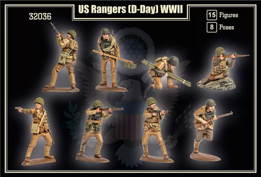 MARS 32036 WORLD WAR II US RANGERS D-DAY 15 FIGURES/ 8 POSES MILITARY GREEN