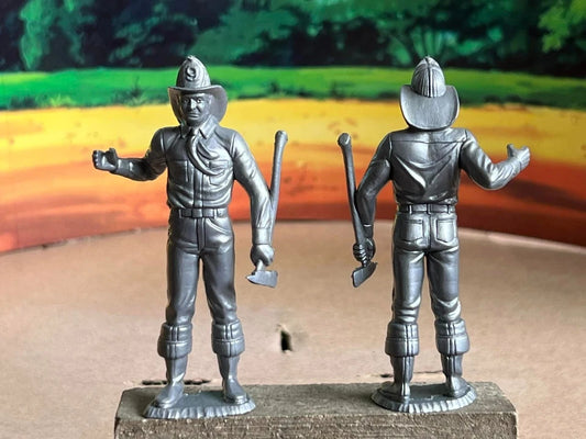 MARX TOYS RECAST 3.5" FIREFIGHTERS - REISSUE 6 FIGURE SET (SILVER GREY)-3 POSES