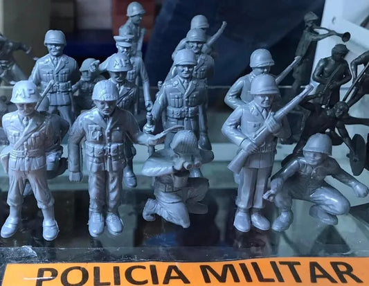 MARX TOYS RECAST 60 MM MILITARY POLICE PLAYSET REISSUE-16 FIGURES- GREY PLASTIC
