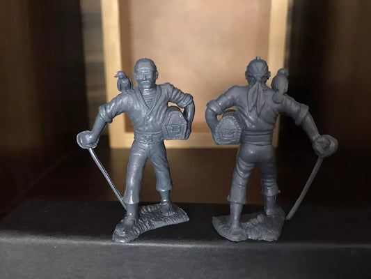 MARX RECAST 60MM PIRATES PLAY SET, 16 FIGURES- GREY PLASTIC