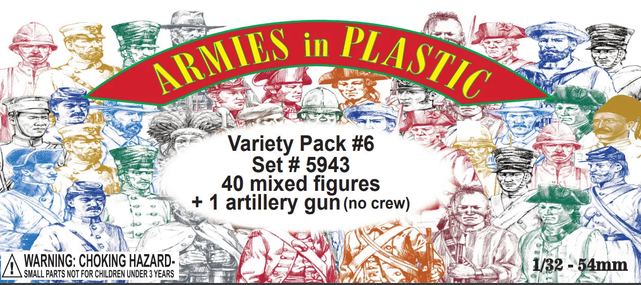 ARMIES IN PLASTIC 5943 VARIETY PACK #6 40 MIXED FIGURES + 1 ARTILLERY GUN +