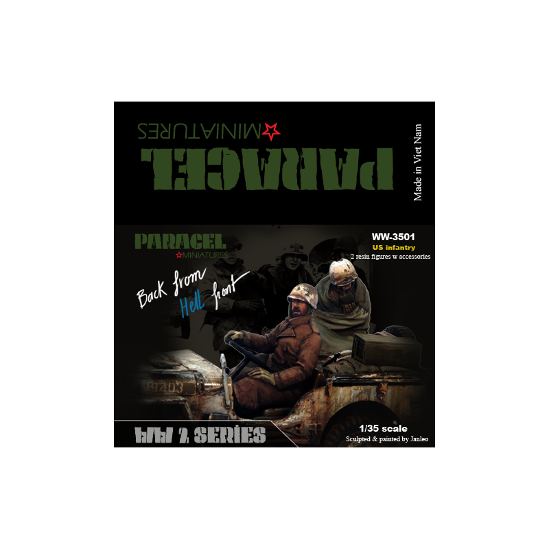 PARACEL MINIATURES 1:35 MODEL FIGURE SET WW3501 WWII SERIES US INFANTRY DRIVER & FROZEN GI (WINTER VERSION)